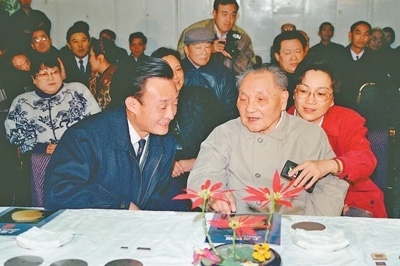 1992年2月10日,鄧小平同志在上海貝嶺微電子制造有限公司參觀時(shí)與吳邦國同志交談。新華社記者 柳中央攝