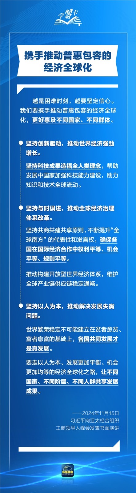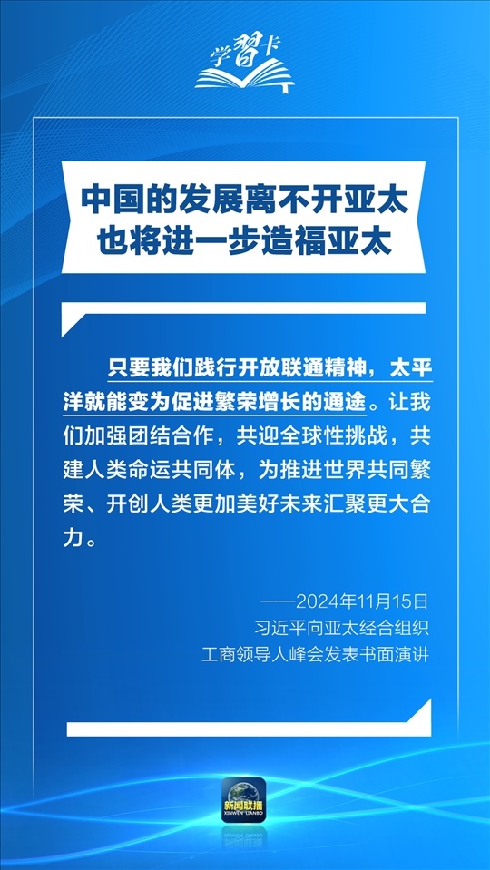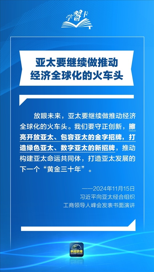 習(xí)近平指出,過去30年,亞太地區(qū)經(jīng)濟(jì)保持了強(qiáng)勁增長,創(chuàng)造了舉世矚目的“亞太奇跡”。如何推動構(gòu)建亞太命運(yùn)共同體,打造亞太發(fā)展的下一個“黃金三十年”?習(xí)主席強(qiáng)調(diào)了一個關(guān)鍵詞:經(jīng)濟(jì)全球化。一起學(xué)習(xí)↓