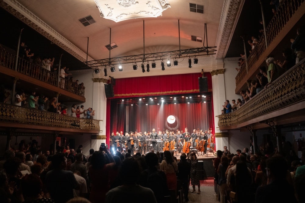 2024年6月3日,在巴西北里奧格蘭德州納塔爾舉行的“慶祝中國(guó)巴西建交50周年——巴西東北部中巴音樂巡演(納塔爾場(chǎng))”音樂會(huì)上,觀眾起身為表演者鼓掌。本場(chǎng)音樂會(huì)上,中國(guó)和巴西經(jīng)典樂曲相互穿插,讓觀眾贊嘆于兩國(guó)音樂之美。