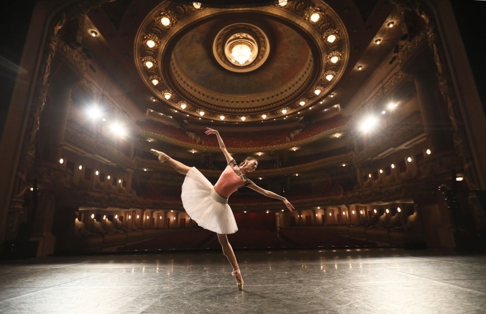 2019年5月24日,中央芭蕾舞團(tuán)演員方夢(mèng)穎在巴西里約熱內(nèi)盧市政劇院排練。中央芭蕾舞團(tuán)攜《大紅燈籠高高掛》來到巴西,為當(dāng)?shù)孛癖姭I(xiàn)上帶有濃郁中國(guó)元素的精彩表演。