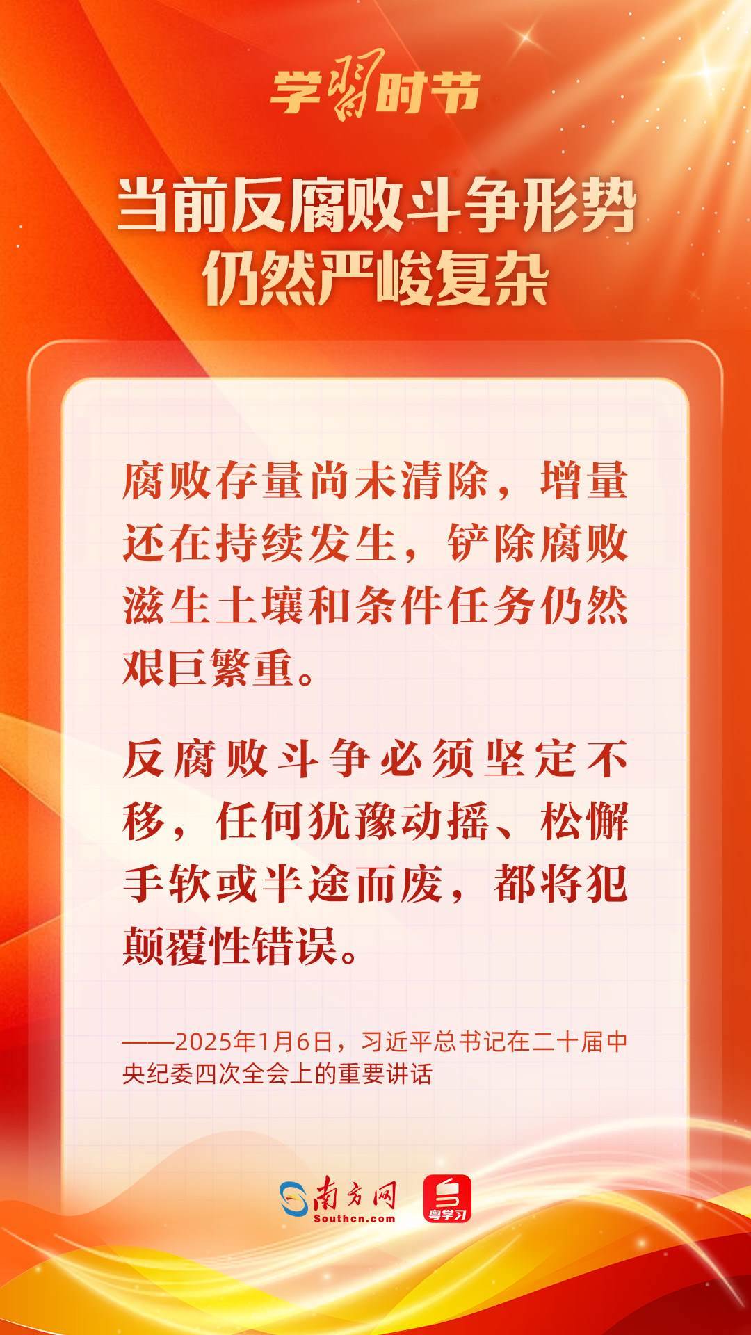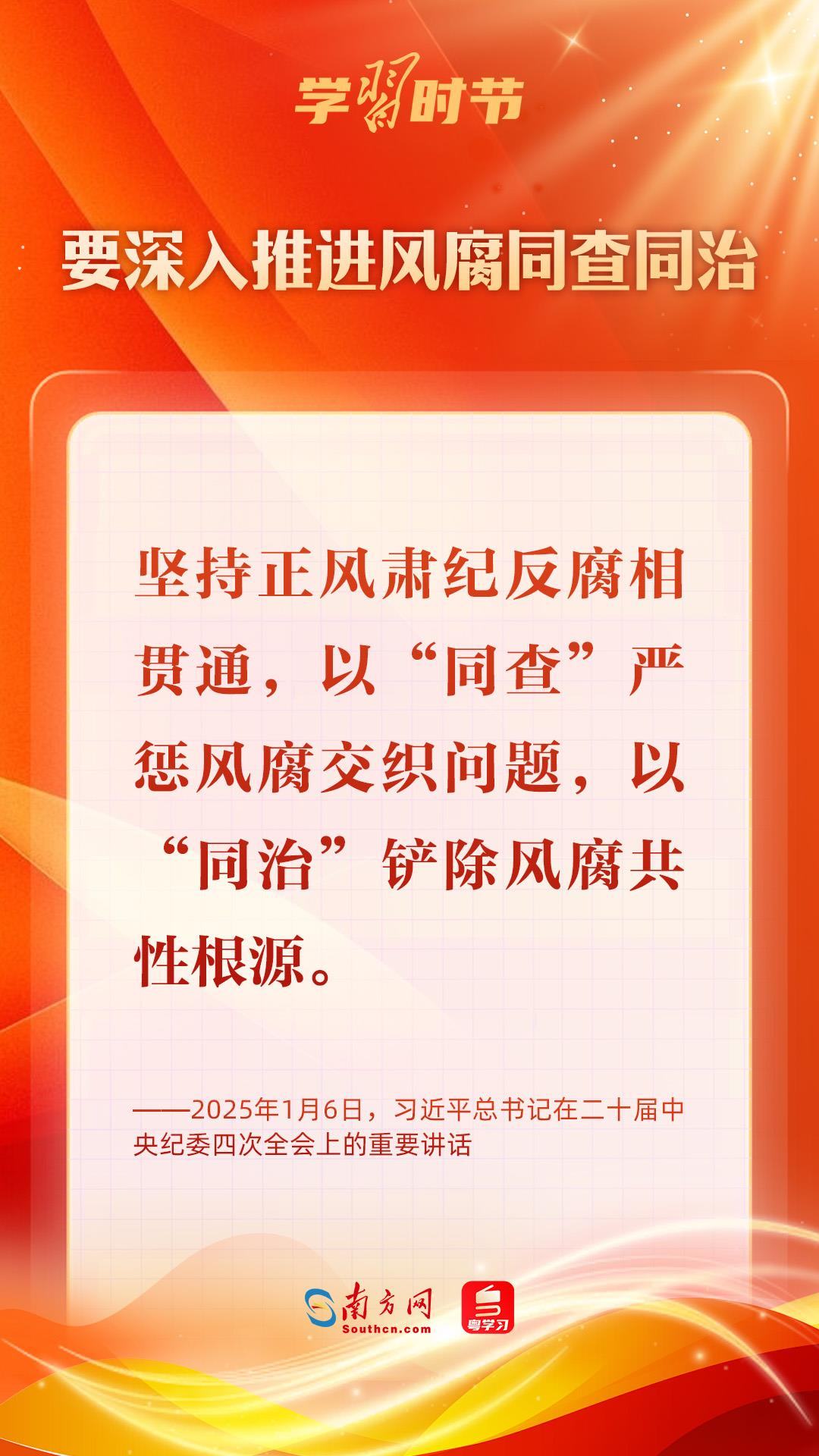 1月6日,中共中央總書記、國家主席、中央軍委主席習(xí)近平在中國共產(chǎn)黨第二十屆中央紀(jì)律檢查委員會第四次全體會議上發(fā)表重要講話,深刻把握反腐敗斗爭基本規(guī)律,深刻分析當(dāng)前反腐敗斗爭形勢,對堅(jiān)決打好反腐敗斗爭攻堅(jiān)戰(zhàn)、持久戰(zhàn)、總體戰(zhàn)提出明確要求,對深入推進(jìn)全面從嚴(yán)治黨作出戰(zhàn)略部署。