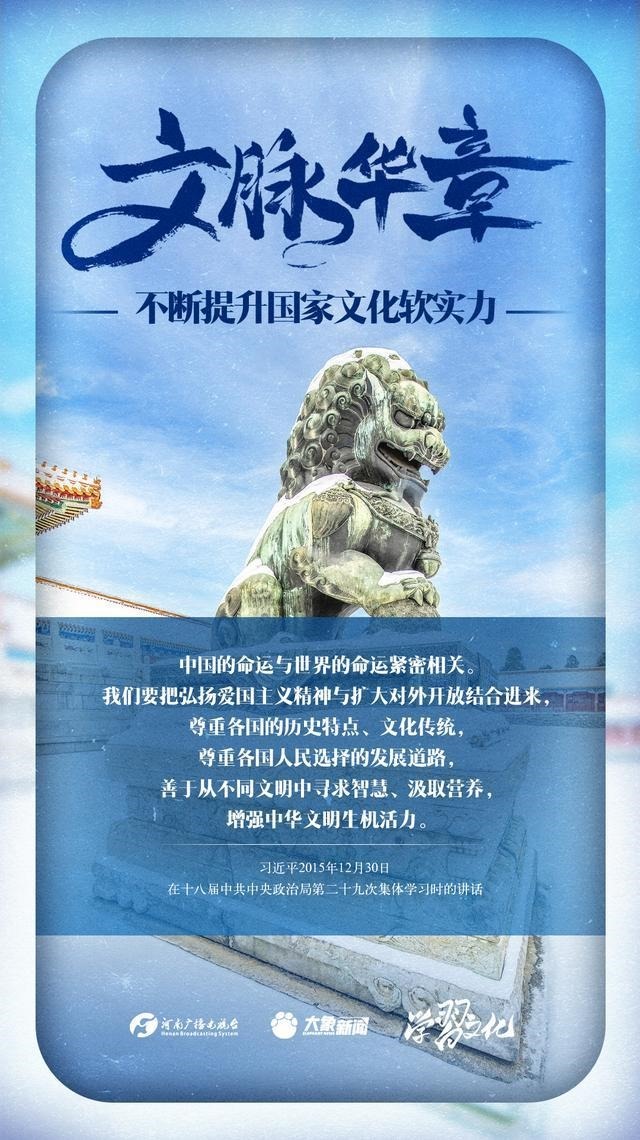 文化軟實(shí)力集中體現(xiàn)了一個(gè)國(guó)家基于文化而具有的凝聚力和生命力,以及由此產(chǎn)生的吸引力和影響力。黨的十八大以來(lái),習(xí)近平總書(shū)記站在黨和國(guó)家事業(yè)發(fā)展全局的戰(zhàn)略高度,就提高國(guó)家文化軟實(shí)力闡發(fā)了一系列重要論述。我們一起學(xué)習(xí)。