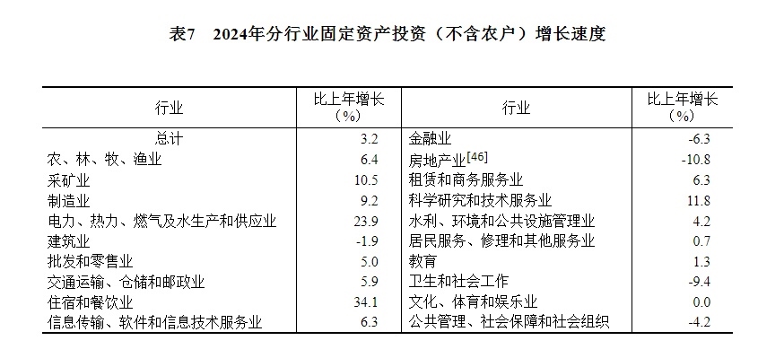 [41]由于投資統(tǒng)計(jì)制度方法改革、第五次全國(guó)經(jīng)濟(jì)普查數(shù)據(jù)修訂、統(tǒng)計(jì)執(zhí)法檢查等因素,2024年固定資產(chǎn)投資相關(guān)指標(biāo)增速按可比口徑計(jì)算。