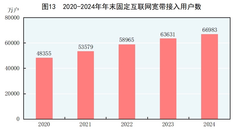 [34]1000M速率及以上的寬帶接入用戶是指報(bào)告期末下行速率大于或等于1000Mbit/s的寬帶接入用戶。