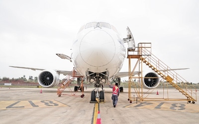 “面前這個大家伙,是來自蒙古航空的波音B787—9飛機,1月中旬飛到海南自貿(mào)港一站式飛機維修產(chǎn)業(yè)基地接受專項維修服務。我們要加緊做好發(fā)動機換發(fā)、專項維修服務和飛機封存等工作?!睏顦s川介紹。
