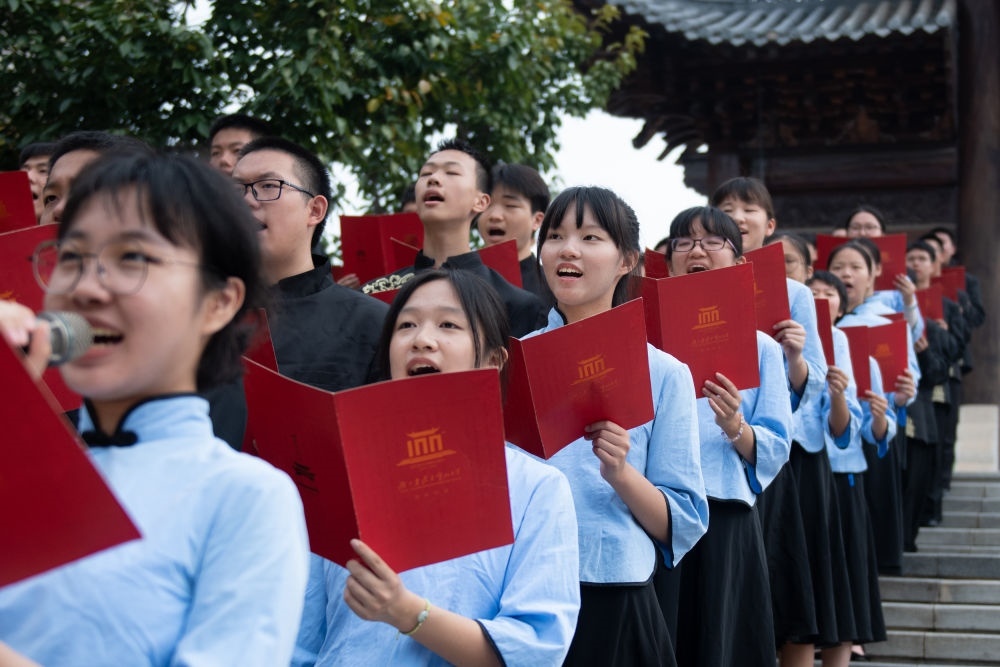 2023年9月4日,武漢市武昌區(qū)2023年秋季開學(xué)思政課在湖北省武昌實(shí)驗(yàn)中學(xué)開講,這是學(xué)生在誦讀《惟楚有材賦》。這堂思政課以“傳承武昌古城千年文脈,爭(zhēng)做守正創(chuàng)新時(shí)代新人”為主題,通過(guò)“實(shí)景體驗(yàn)+課堂展示”的形式,講述武昌古城1800年文脈的歷史與傳承,為該校學(xué)生帶來(lái)一場(chǎng)沉浸式課堂體驗(yàn)。