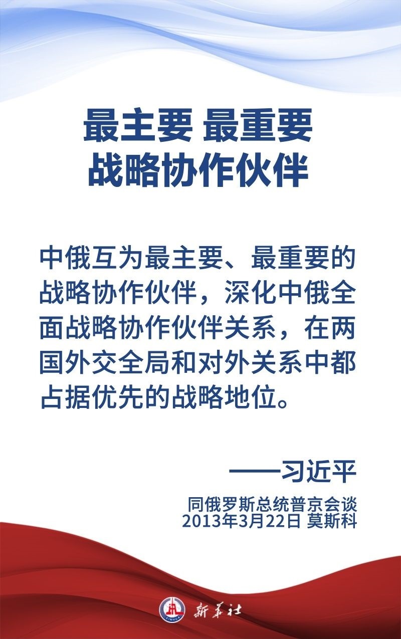 中俄關系歷經(jīng)風雨,歷久彌堅,樹立了大國、鄰國永久睦鄰友好、全面戰(zhàn)略協(xié)作、互利合作共贏的典范。習近平主席和普京總統(tǒng)保持密切交往,為新時代中俄關系作出頂層設計,提供戰(zhàn)略引領。在國事訪問等重要場合,習近平主席這樣論述中俄關系——