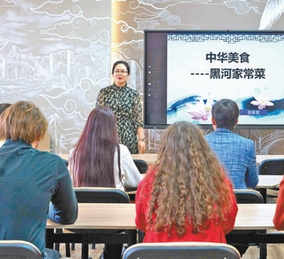 在俄羅斯布拉戈維申斯克國立師范大學(xué)孔子學(xué)院,中國老師在授課。