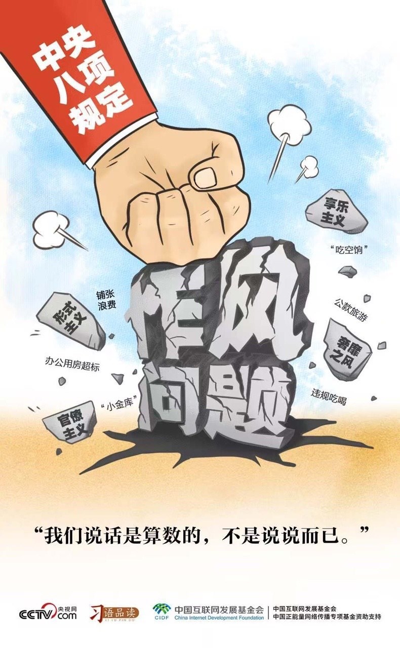 2012年12月,習近平總書記在主持中央政治局會議,審議通過《十八屆中央政治局關于改進工作作風、密切聯(lián)系群眾的八項規(guī)定》時說了這樣一番話:“我們說了不是白說,說了必須做到,把文件上寫的內容一一落到實處?!?/p>