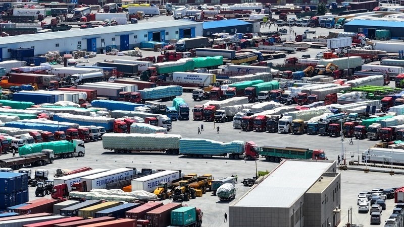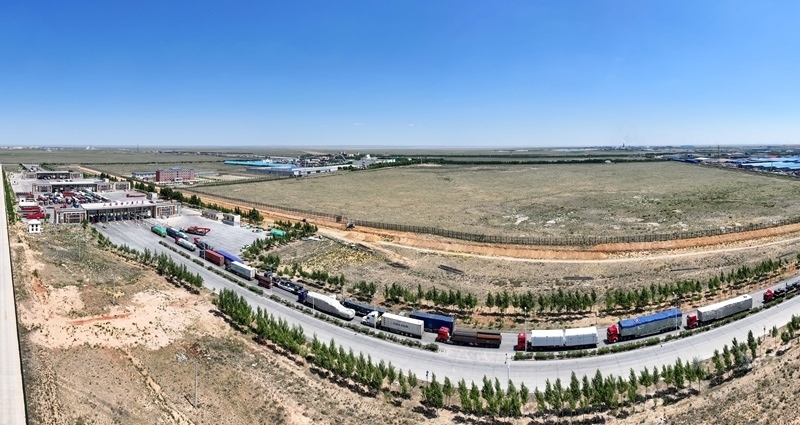6月22日拍攝的內(nèi)蒙古二連浩特公路口岸(無(wú)人機(jī)照片)。