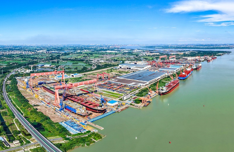 6月28日拍攝的位于江蘇省江都經(jīng)濟開發(fā)區(qū)的揚州中遠(yuǎn)海運重工有限公司生產(chǎn)廠區(qū)(無人機照片)。