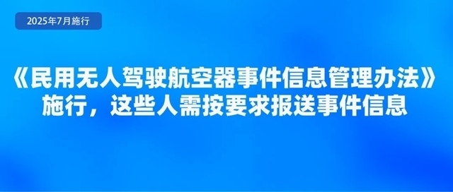 為規(guī)范民用無(wú)人駕駛航空器事件信息的管理,準(zhǔn)確掌握有關(guān)無(wú)人駕駛航空器安全運(yùn)行信息,及時(shí)發(fā)現(xiàn)安全隱患,控制運(yùn)行風(fēng)險(xiǎn),日前,民航局印發(fā)《民用無(wú)人駕駛航空器事件信息管理辦法》,自7月1日起施行。《辦法》要求,特定類(lèi)和審定類(lèi)合格證持有人、擁有中型和大型無(wú)人駕駛航空器50架(含)以上的開(kāi)放類(lèi)合格證持有人、擁有大型無(wú)人駕駛航空器10架(含)以上的開(kāi)放類(lèi)合格證持有人應(yīng)當(dāng)制定事件信息管理程序,指定滿(mǎn)足條件的人員負(fù)責(zé)事件信息管理,并按要求報(bào)送事件信息。事發(fā)相關(guān)單位和人員應(yīng)當(dāng)按照規(guī)定如實(shí)報(bào)告事件信息,不得瞞報(bào)、謊報(bào)或者遲報(bào)。