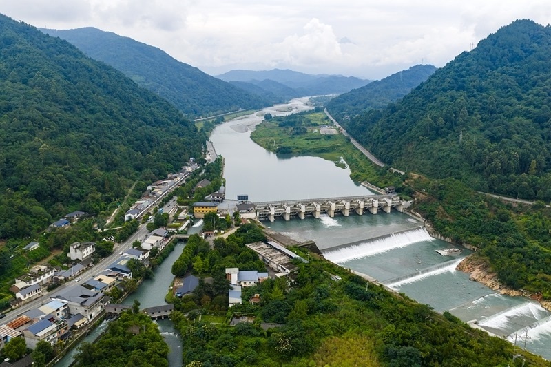 9月10日拍攝的四川彭州湔江堰(無(wú)人機(jī)照片)。