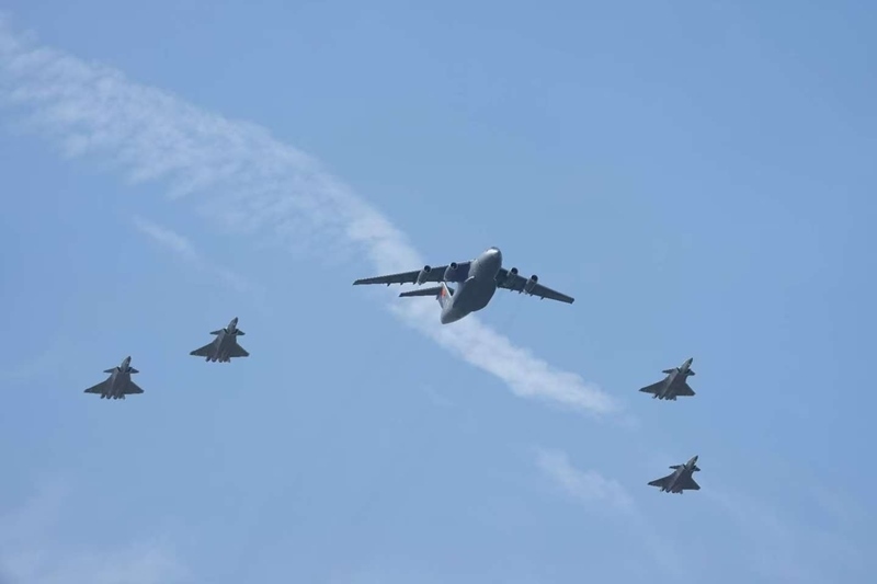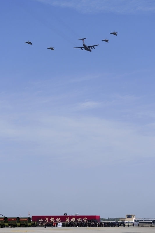 9月12日,第十二批在韓中國(guó)人民志愿軍烈士遺骸回國(guó)。這是為接運(yùn)烈士遺骸回國(guó)的運(yùn)-20專(zhuān)機(jī)伴飛護(hù)航的殲-20飛機(jī)。