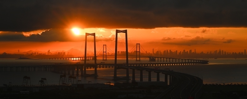 9月14日,深中通道與初升的朝陽交相輝映。