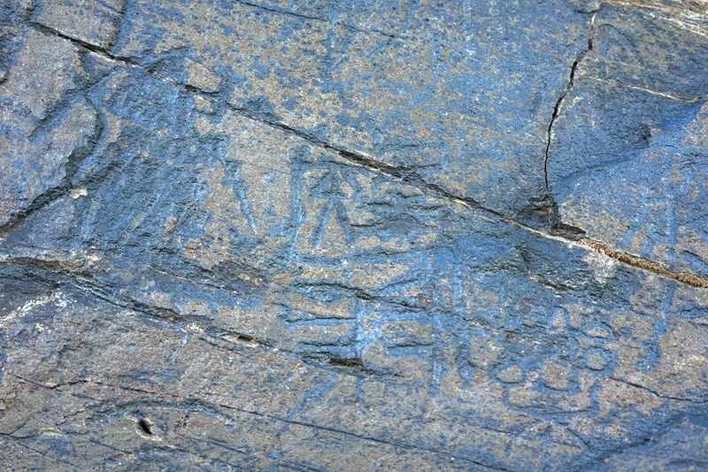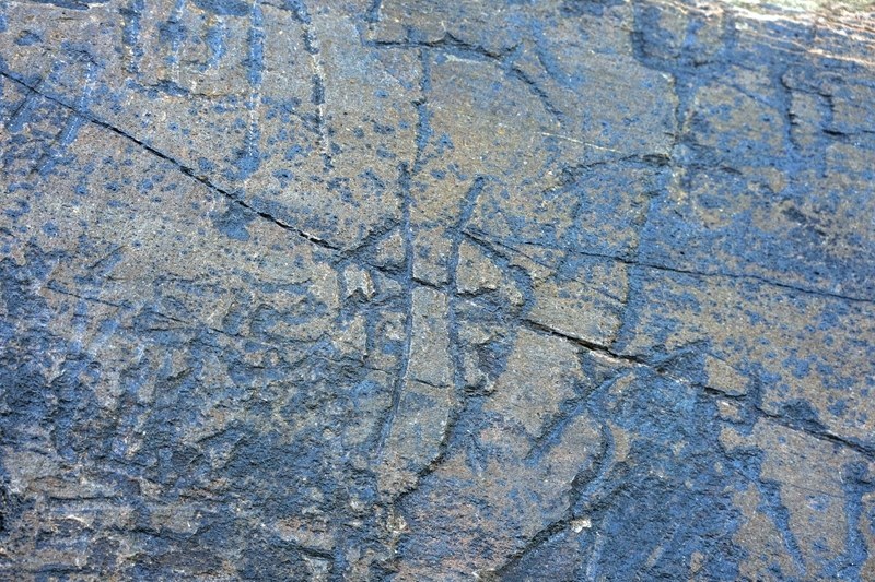 文物考古工作者于2023年7月在青海省瑪多縣扎陵湖畔對尕日塘秦刻石進(jìn)行現(xiàn)場考察時(shí)拍攝的該刻石遺跡照片。