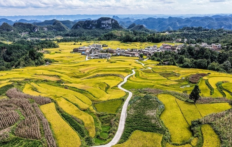長順縣長寨街道中塘村的梯田風光(9月17日攝,無人機照片)。