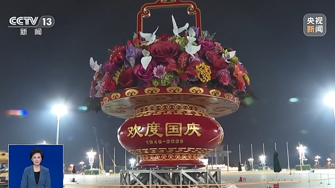 22日凌晨,天安門廣場中心的“祝福祖國”巨型花籃吊裝完成,籃盤與籃肚精準合龍。巨型花籃是如何組裝的?今年的花籃有哪些新亮點?