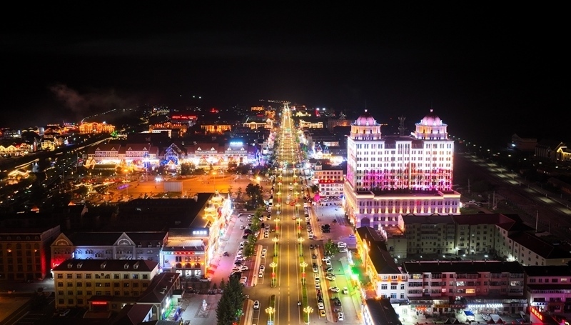 7月4日拍攝的內(nèi)蒙古興安盟阿爾山市夜景(無人機照片)。