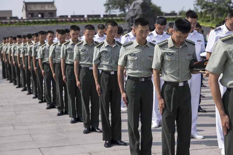 7月7日,部隊(duì)官兵代表在現(xiàn)場(chǎng)默哀。
