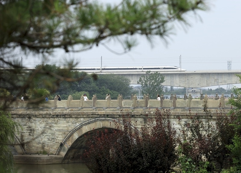 這是7月4日拍攝的盧溝橋和宛平城城樓。