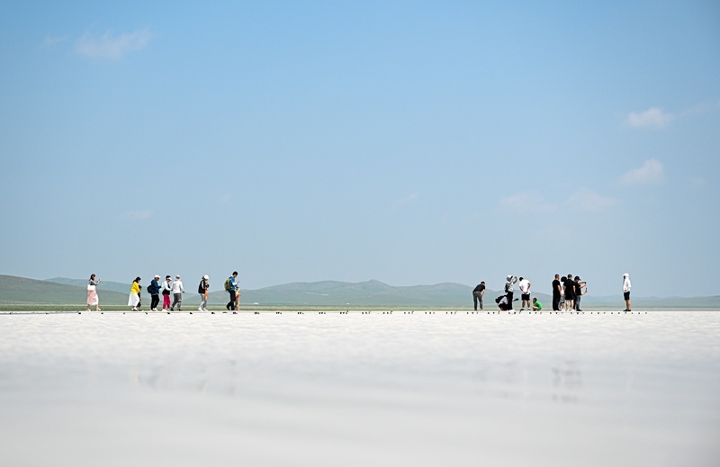 7月11日,游客在內(nèi)蒙古錫林郭勒盟太仆寺旗白音查干湖游玩。