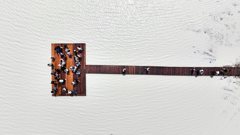 7月11日,游客在內(nèi)蒙古錫林郭勒盟太仆寺旗白音查干湖游玩(無(wú)人機(jī)照片)。