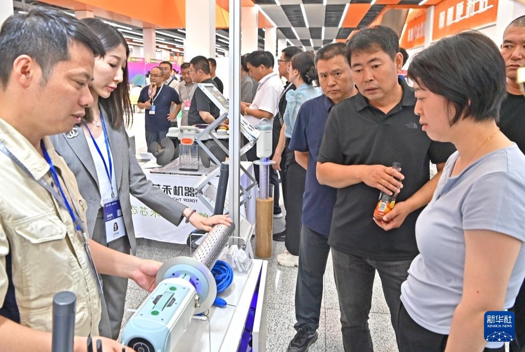 7月12日,觀眾在沈陽國際展覽中心參觀糧食監(jiān)測器械。新華社記者 周華 攝