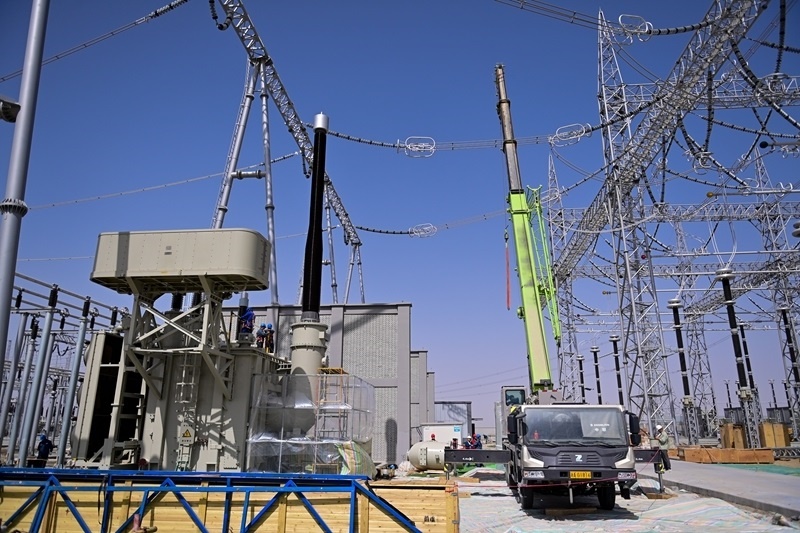 這是建設(shè)中的巴州-鐵干里克-若羌750千伏輸變電工程(2024年8月13日攝)。