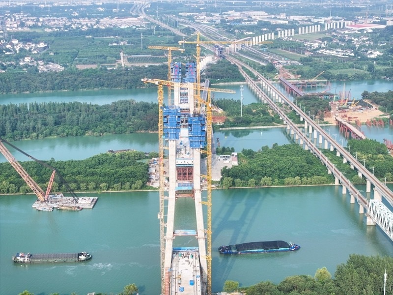 近日,由中國(guó)鐵建大橋局承建的滬渝蓉高鐵跨京杭運(yùn)河斜拉橋主橋兩岸鋼混段架設(shè)順利完成,大橋主橋上部結(jié)構(gòu)施工轉(zhuǎn)入鋼梁懸臂拼裝階段,主塔建設(shè)已完成90%。據(jù)悉,該橋位于江蘇揚(yáng)州境內(nèi),是滬渝蓉高鐵全線關(guān)鍵控制性工程,橋長(zhǎng)564.3米,主跨300米。