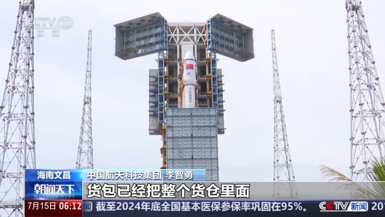 中國航天科技集團(tuán) 李智勇:裝貨量特別大,天舟九號(hào)是天舟六號(hào)以來裝貨量最大的一次,這個(gè)貨包已經(jīng)把整個(gè)貨倉里面堆滿了,而且有些地方還突出來了。