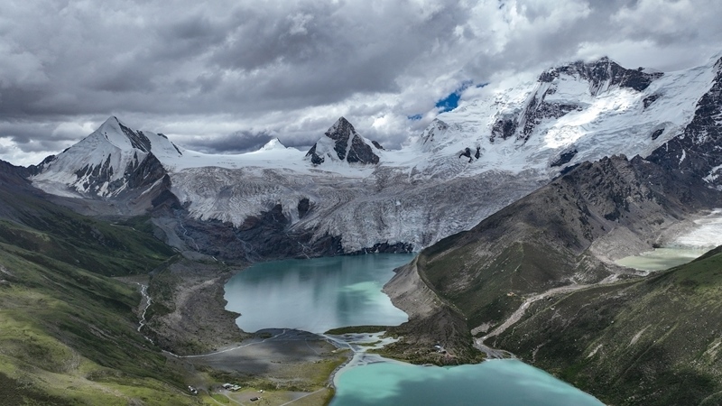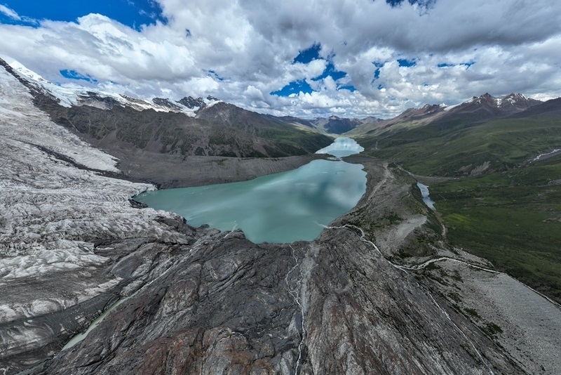 7月19日拍攝的薩普雪山及延伸的冰川(無人機照片)。