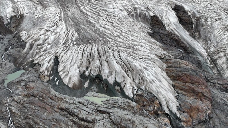 7月19日拍攝的薩普冰川冰舌末端(無人機照片)。