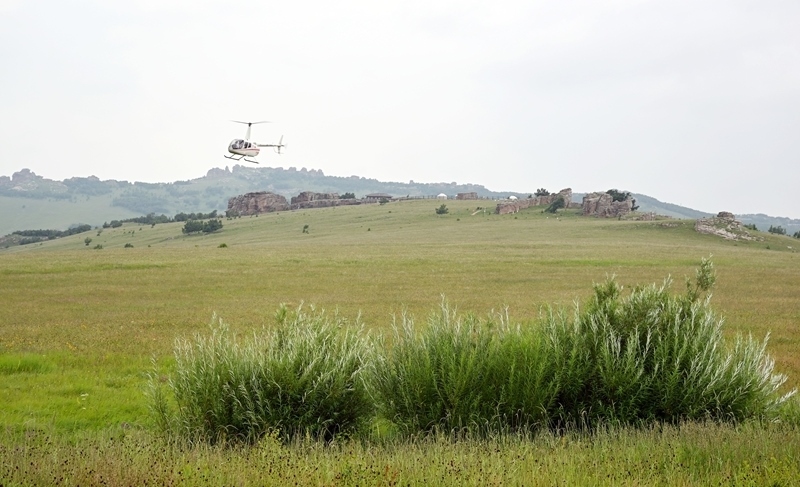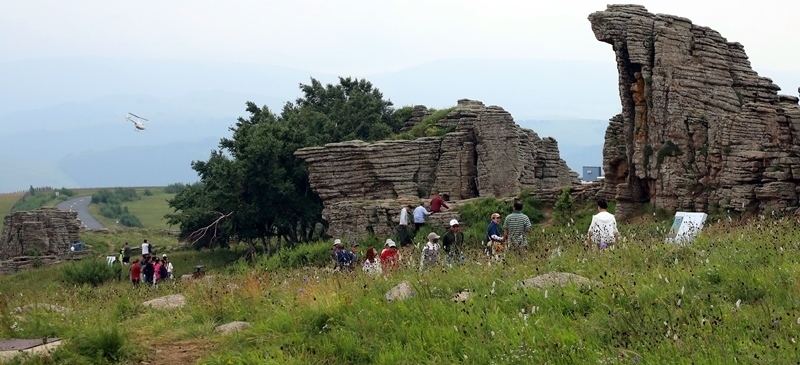 7月24日,空中觀光直升機從內蒙古自治區(qū)赤峰市克什克騰旗阿斯哈圖石林上空飛過。