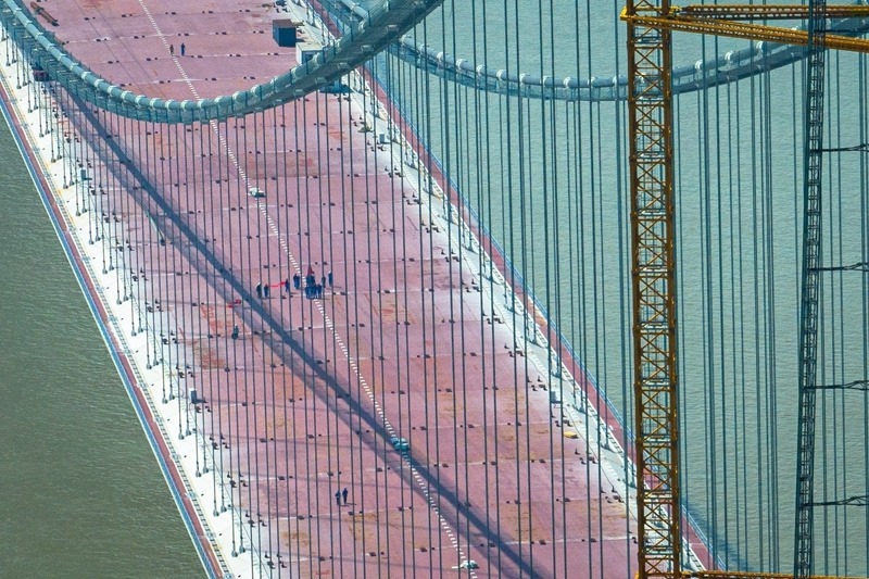 據(jù)了解,新港高速公路武漢雙柳長江大橋及接線工程是國家高速路網(wǎng)武漢都市圈環(huán)線重要組成部分,路線全長35.043公里,其中跨江主橋主跨1430米、寬50.5米,設(shè)計(jì)時(shí)速120公里,采用雙向8車道設(shè)計(jì),是目前長江上在建的最寬鋼箱梁懸索橋。