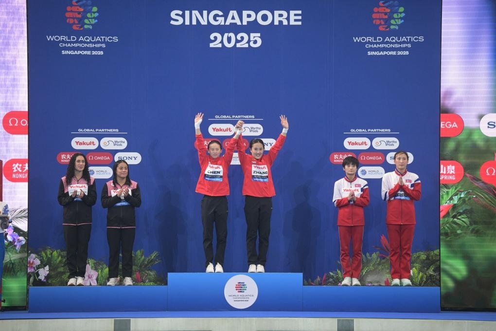 新華社新加坡7月28日電(記者岳晨星、王子江)2025年世界游泳錦標(biāo)賽28日在新加坡進(jìn)行跳水項(xiàng)目男子雙人三米板和女子雙人10米臺(tái)的決賽,王宗源/鄭九源、陳芋汐/掌敏潔分別奪得冠軍,為中國(guó)隊(duì)再添兩金。