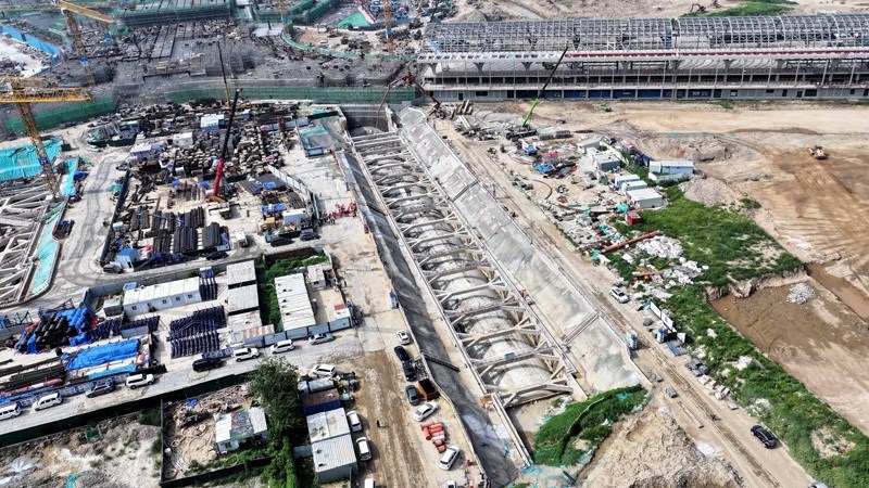 7月30日拍攝的濟(jì)濱高鐵機(jī)場隧道施工現(xiàn)場。