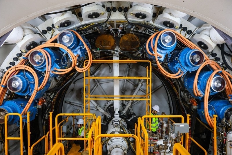 該盾構(gòu)機開挖直徑14.34米,掘進長度3850.6米,最大埋深62.5米,為單洞雙線隧道。