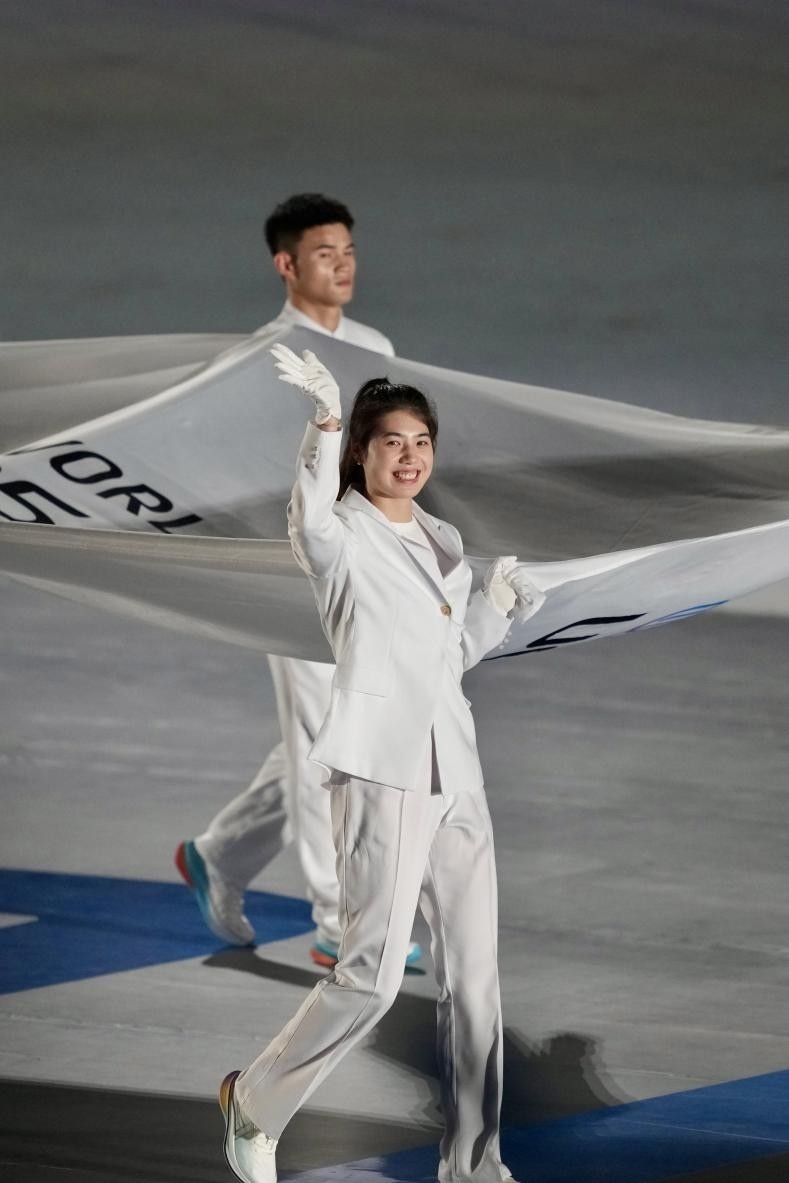 開幕式在《繽紛之約》表演中拉開序幕,街舞與輪滑、滑板、啦啦操等運(yùn)動元素碰撞出青春火花激情開場。倒計時焰火組成的篆體“成都”字樣,將傳統(tǒng)文化與現(xiàn)代科技巧妙結(jié)合。來自全球的運(yùn)動員在吉祥物“蜀寶”“錦仔”的歡迎下入場,手持融入蜀繡、漆藝等非遺工藝的引導(dǎo)牌,踏上榮耀之路。