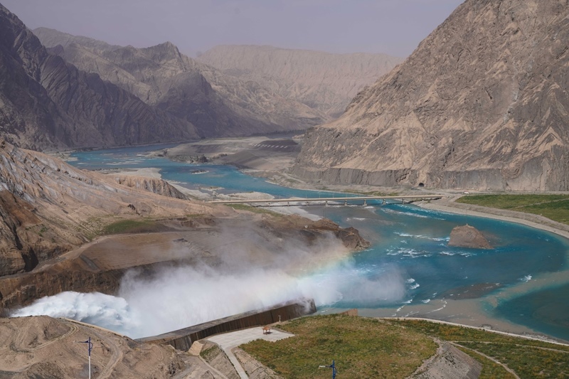 阿爾塔什水利樞紐工程位于新疆維吾爾自治區(qū)喀什地區(qū)莎車縣霍什拉甫鄉(xiāng)和克孜勒蘇柯?tīng)柨俗巫灾沃莅⒖颂湛h庫(kù)斯拉甫鄉(xiāng)交界處,是葉爾羌河山區(qū)控制性水利樞紐工程,總庫(kù)容22.49億立方米,設(shè)計(jì)年發(fā)電量21.86億千瓦時(shí),是新疆目前規(guī)模最大的水利樞紐工程。該工程兼顧生態(tài)、防洪、灌溉、發(fā)電等功能,2021年8月建成投產(chǎn)以來(lái),平均每年向塔里木河干流生態(tài)補(bǔ)水約3.3億立方米。該工程建成后,徹底解決了葉爾羌河千年水患,每年減少約1000萬(wàn)人次的防洪投入;同時(shí)為南疆提供清潔能源,改善了南疆的電力短缺狀況。