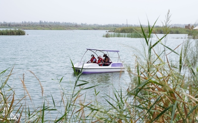 8月6日,人們在拉里昆國家濕地公園乘船。