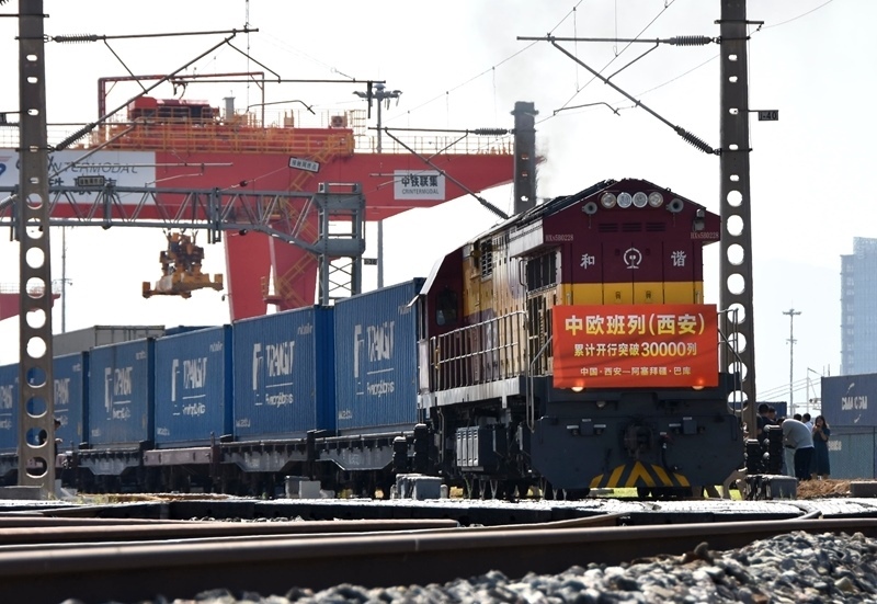 當(dāng)日上午,滿載著55個(gè)集裝箱光伏組件的X9043次中歐班列從西安國(guó)際港站駛出,開往阿塞拜疆巴庫,標(biāo)志著中歐班列(西安)自2013年開行首列以來累計(jì)開行突破30000列,開行總量超過全國(guó)中歐班列累計(jì)開行總量的四分之一。西安國(guó)際港站也成為了全國(guó)首個(gè)中歐班列開行量突破30000列的車站,開行量、貨運(yùn)量、重箱率等核心指標(biāo)位居全國(guó)第一。