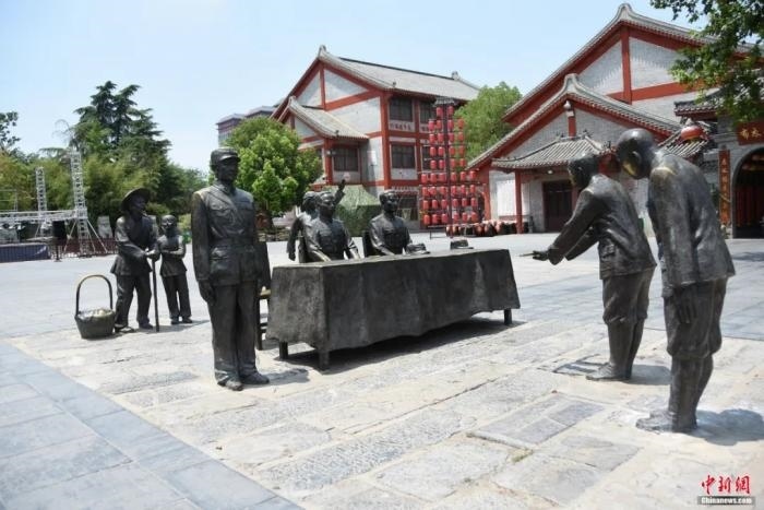 復(fù)原投降日軍整修竹木街的雕像。王宇 攝