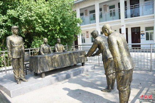漯河市第二中學(xué)內(nèi)復(fù)原日軍受降儀式現(xiàn)場(chǎng)雕像。王宇 攝