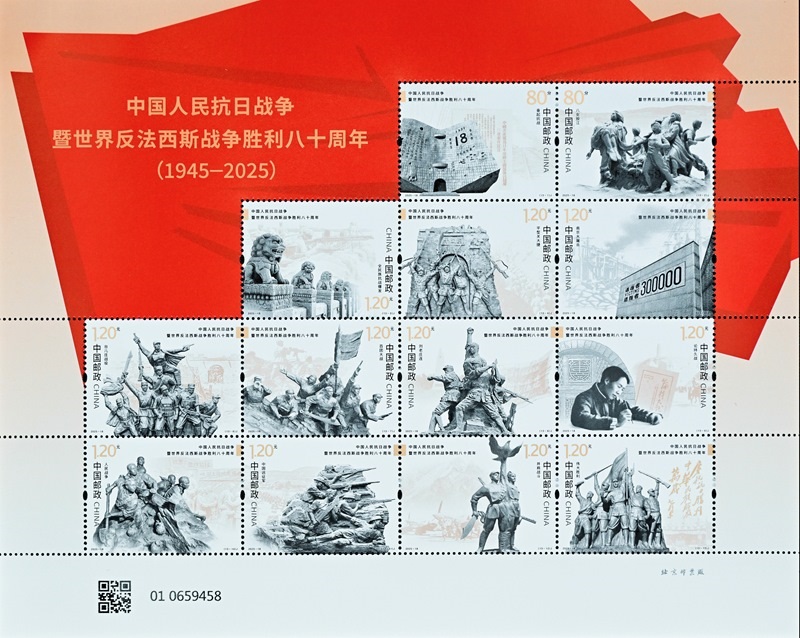 9月3日,中國郵政發(fā)行《中國人民抗日戰(zhàn)爭暨世界反法西斯戰(zhàn)爭勝利八十周年》紀念郵票1套13枚、小型張1枚,全套面值為20.8元。