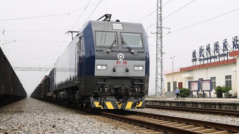 9月4日,一列火車駛進(jìn)欽州港東站轉(zhuǎn)運集裝箱。