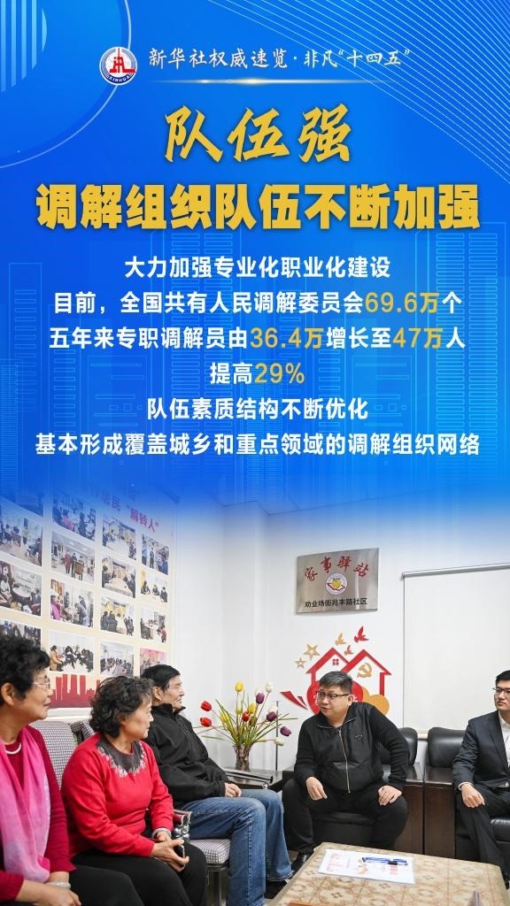 “十四五”期間,司法部堅持和發(fā)展新時代“楓橋經(jīng)驗”,充分發(fā)揮調(diào)解職能作用,以“機制全、領(lǐng)域廣、隊伍強、效果實”十二字為工作“秘訣”,大力加強矛盾糾紛排查化解,切實保障群眾合法權(quán)益,維護社會和諧穩(wěn)定。