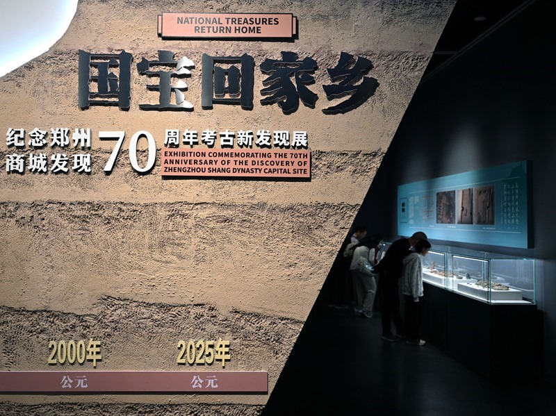 10月3日,觀眾在鄭州商代都城遺址博物院參觀“國(guó)寶回家鄉(xiāng)——紀(jì)念鄭州商城發(fā)現(xiàn)70周年考古新發(fā)現(xiàn)展”。