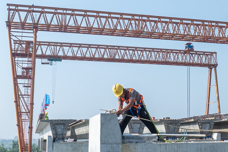 10月6日,在武漢都市圈環(huán)線高速公路孝感南段4標(biāo)項(xiàng)目上,中鐵二十局建設(shè)者進(jìn)行施工作業(yè)。