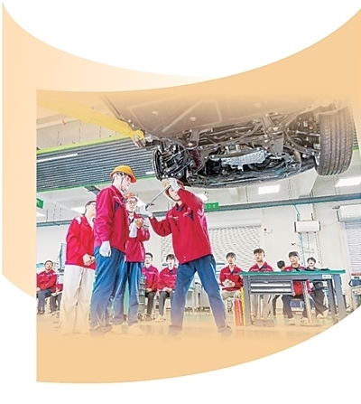山東水利技師學(xué)院實(shí)訓(xùn)中心,學(xué)生正進(jìn)行整車(chē)維修和保養(yǎng)操作。